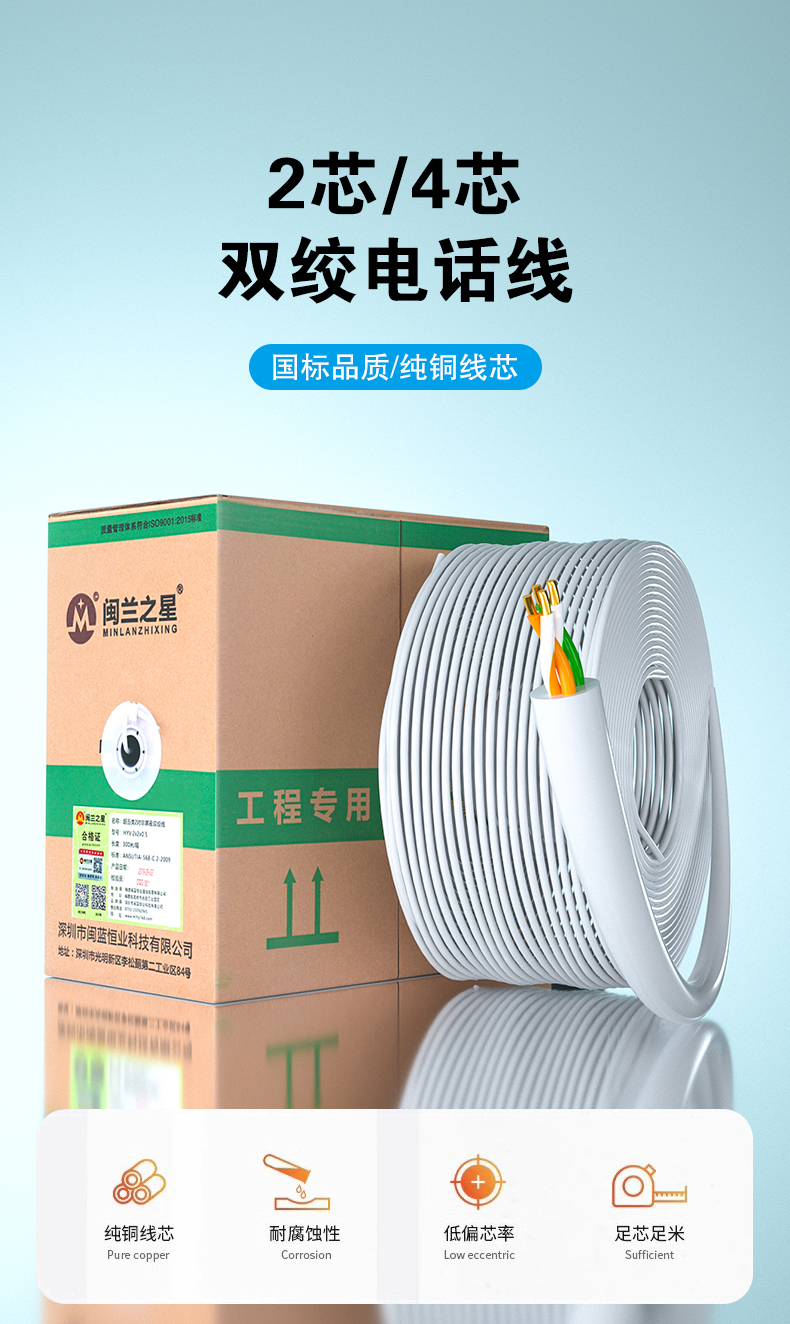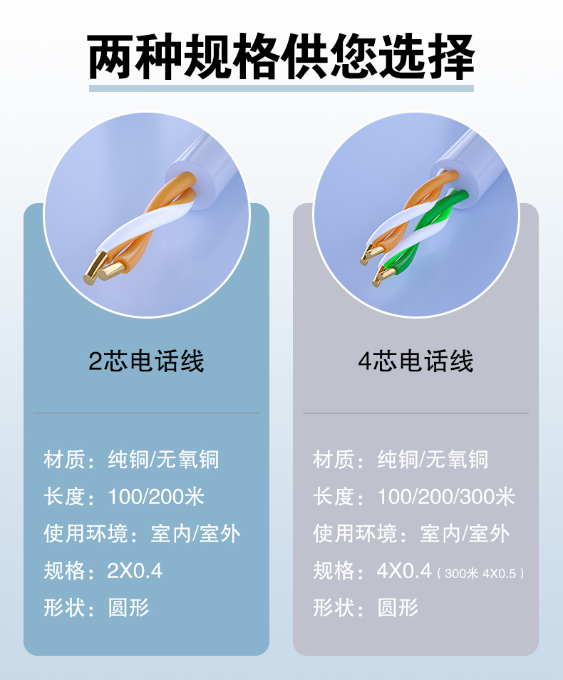 兩芯圓電話線 HYV 2*0.4 / 四芯圓電話線 HYV 4*0.4