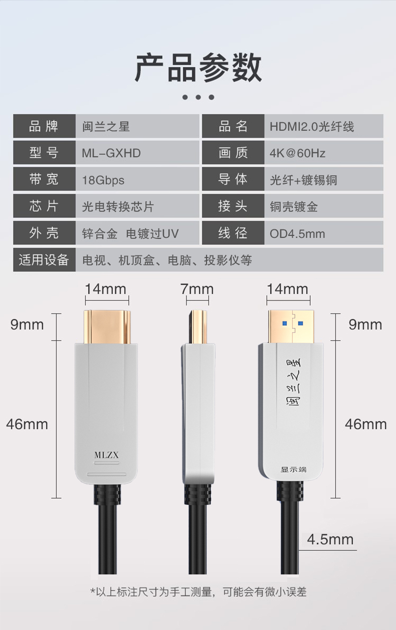 閩蘭之星 光纖HDMI高清連接線 遠(yuǎn)距離高速傳輸電腦 顯示器電視